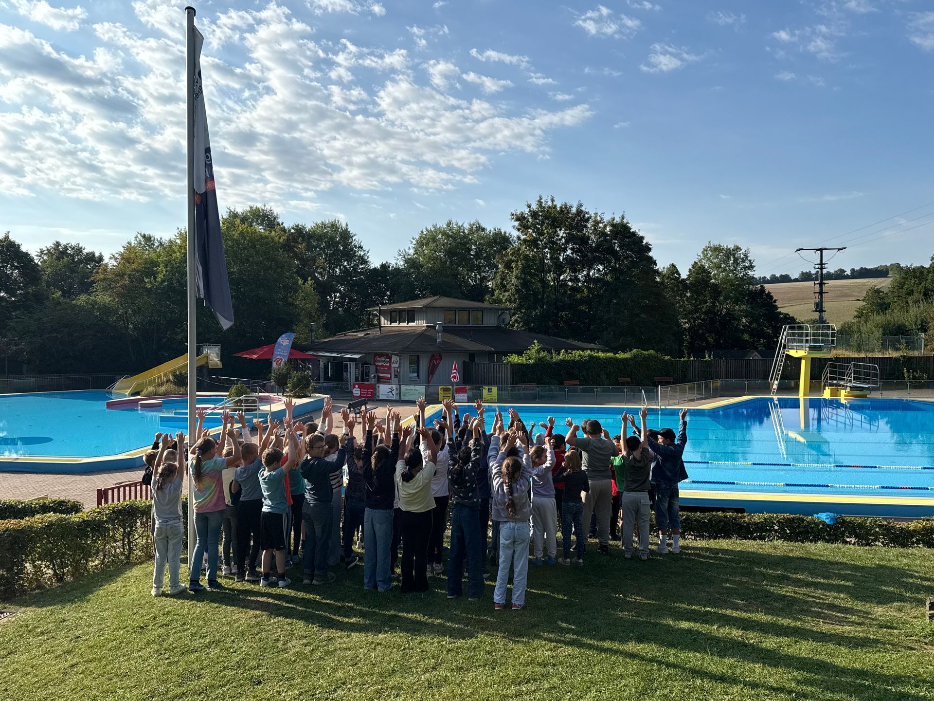 Schon in der zweiten Schulwoche nach den Sommerferien stand für die vierten Klassen ein besonderes Highlight auf dem Programm: die traditionelle Schwimmwoche im Freibad Weibern. Fünf Tage lang trainierten die Kinder fleißig ihre Schwimmfähigkeiten, verbesserten ihre Ausdauer im Wasser und übten wichtige Techniken.